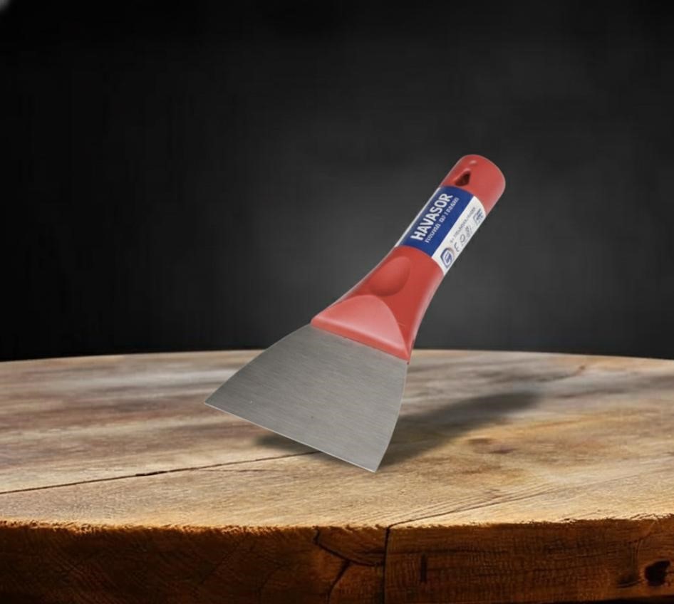 *Ergonomic plastic handle *0.70 mm thick, 50 Rockwell alloy spring steel blade *Impact-resistant plastic body *Plastic body compatible with handle extension (stick insertable) *Available sizes: 80, 100, 120, 140 mm *Made in Turkey |
